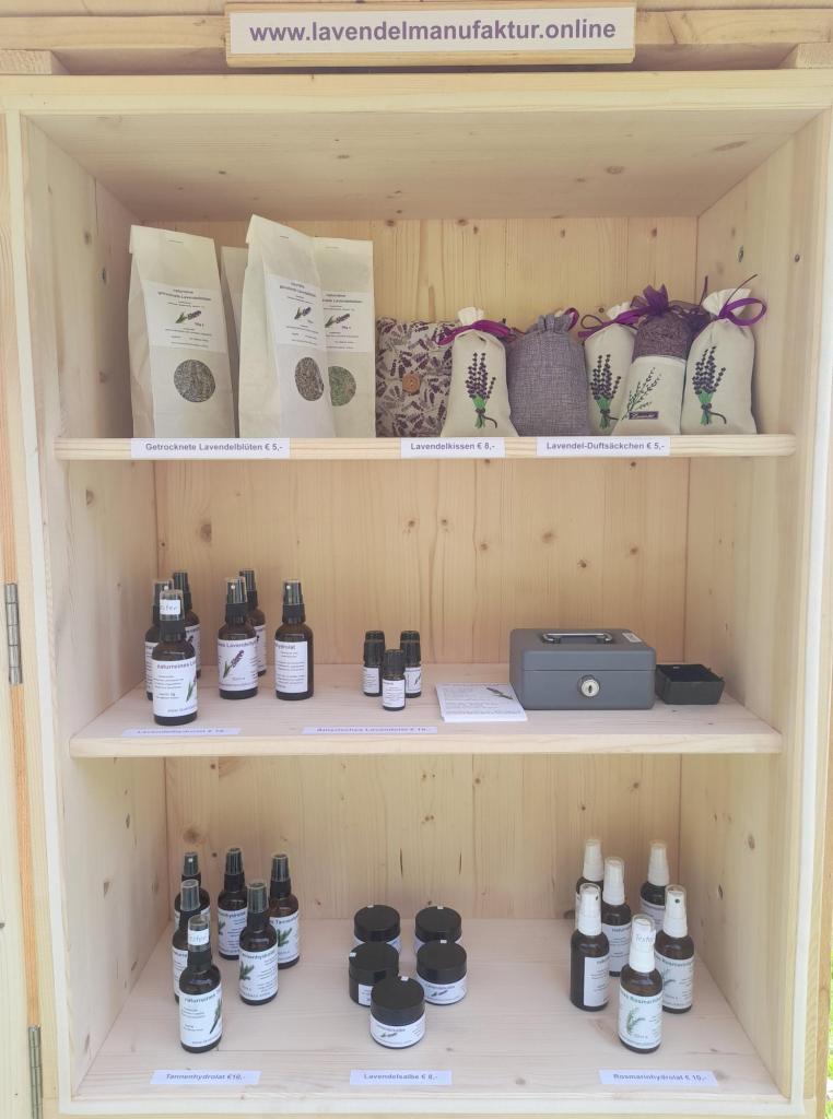 In unserem Verkaufsstand direkt beim Lavendelfeld sind ab sofort wieder unsere beliebten Lavendelprodukte verfügbar. Schauen Sie vorbei und lassen Sie sich von unseren Lavendelprodukten verzaubern.
